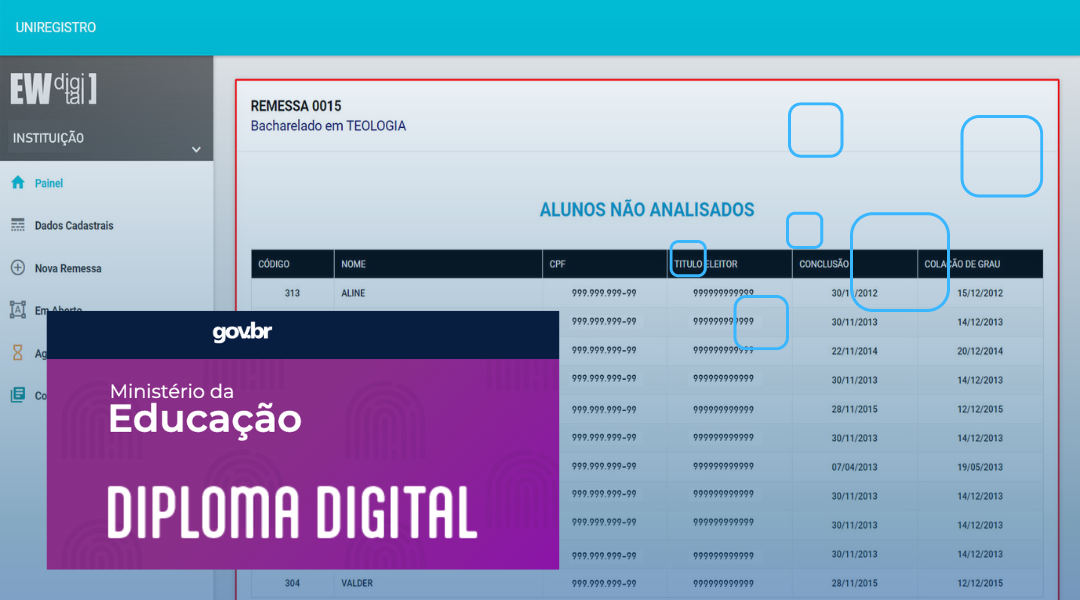 Todo processo de emissão, registro e assinatura é online e em poucos minutos. A plataforma atende todos requisitos do MEC e está em conformidade com a LGPD. Geração de XML e RVDD Individual ou em Lote
